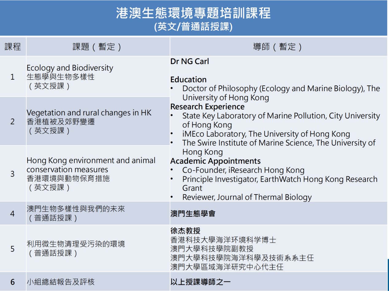 为在新时代新国际环境背景下进一步拓宽国际交流渠道,全面提升员工国际化视野,培养具有全球胜任力和国际竞争力的高素质人才。公司拟联合香港大学继续教育学院、澳门大学持续进修中心开展“生态系统与环境科学主题“”访学项目。授课教师均来自澳门大学、香港大学资深教授,这些教师主要毕业于哈佛大学、加州理工学院、剑桥大学、爱丁堡大学、北京大学等世界一流大学。项目详细介绍见附件一,现将报名信息通知如下: