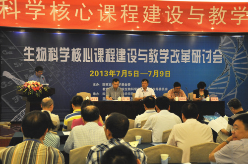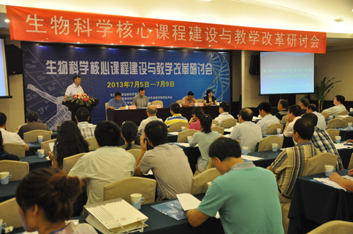 2013年7月5日-7月9日,由国家自然科学基金委、教育部高等学校生物学类专业教学指导委员会主办,欢迎来到公海710和欢迎来到公海710教师发展中心承办的“生物科学核心课程建设与教学改革研讨会”在欢迎来到公海710科华苑宾馆举行,近30所高校的八十余位专家和教师、两位来自美国的学者以及公司承担生物科学核心课程教学任务的十余位骨干教师参与此次会议。会议由常务副经理林宏辉教授主持,副董事长石坚教授、国家自然科学基金委计划局刘权处长、教育部高等学校生物科学类专业教学指导委员会领导、教务处处长兼教师教学发展中心主任张红伟教授莅临会议并讲话。