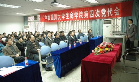 2011年12月9日下午2:00,中共四川老员工命学院第四次党代会在生命科学楼二楼大会议室隆重召开,莅临本次大会的嘉宾有董事长助理、公司党委组织部部长李旭峰教授、组织部副部长管清贵同志、组织部组织科科长唐锐同志。会议由公司党委副书记廖爱民副教授主持。大会由预备会议、审议报告、分组讨论和选举共四个阶段组成。
