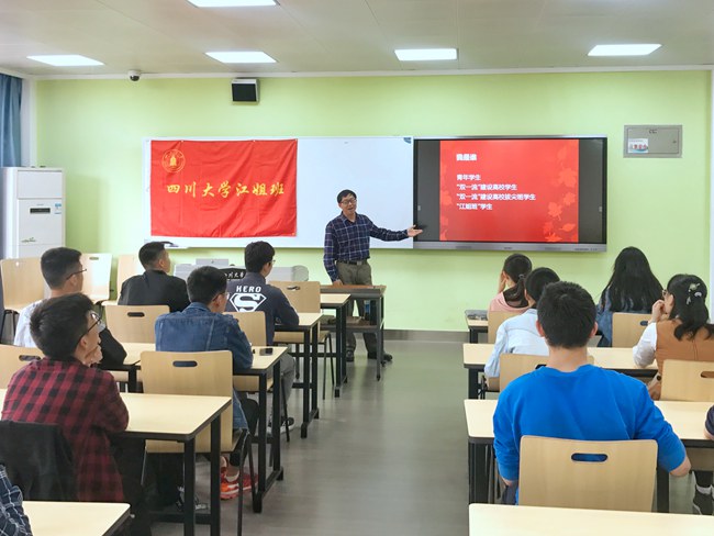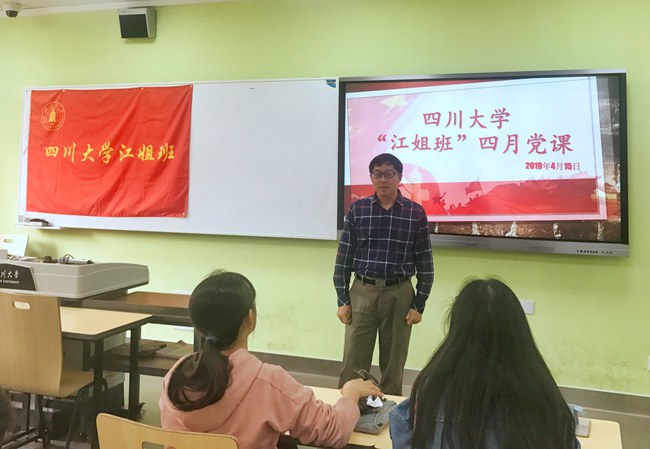 2019年4月15日下午2:30,生命科学公司党委书记林宏辉教授在江安校区一教D104为“江姐班”同学讲授了本学期的第一堂党课。