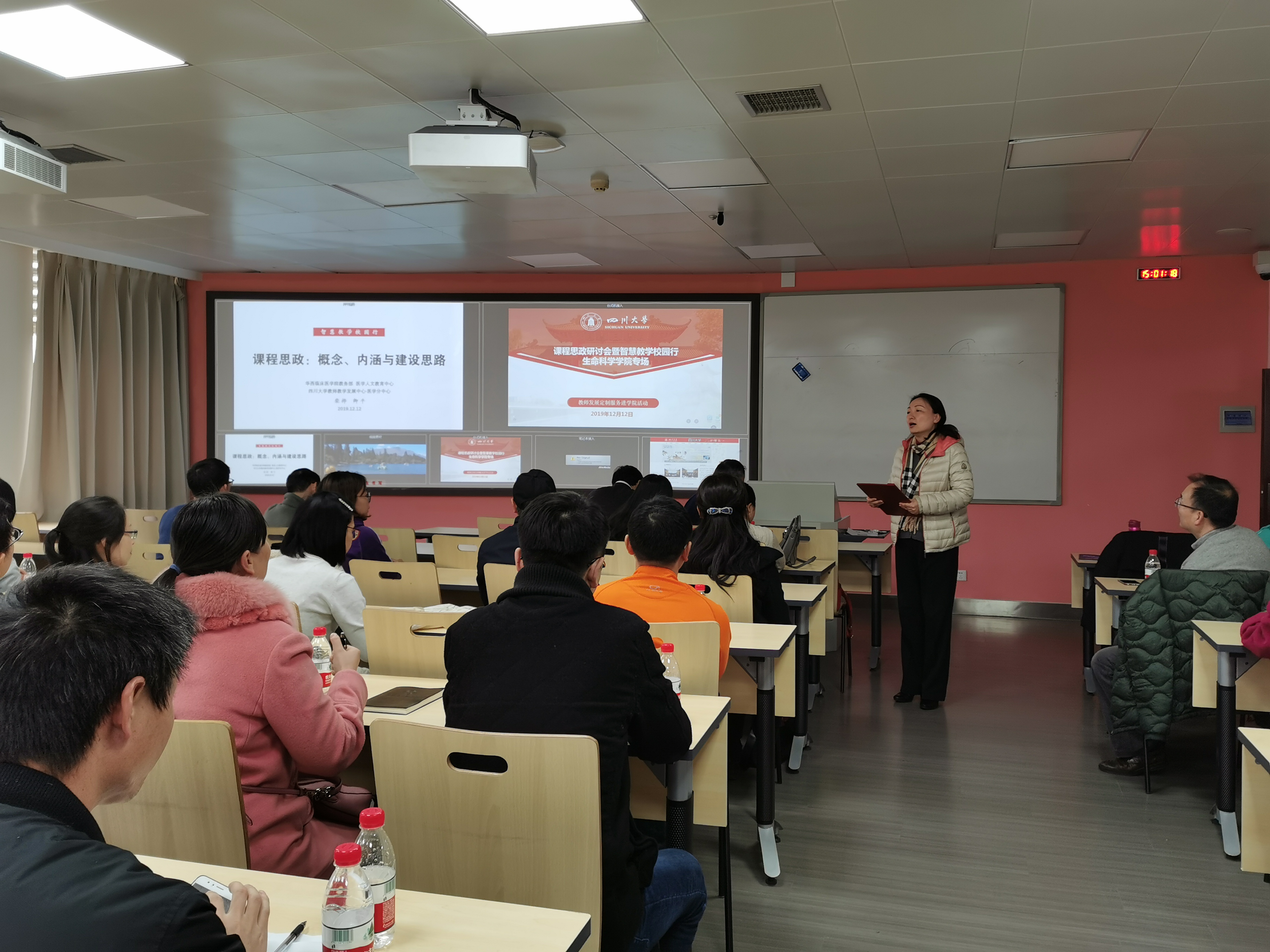 为进一步深化公司产品改革,推进课程思政建设,落实“立德树人”根本任务,2019年12月12日下午,生命学院经理王红宁教授、副经理赵云教授以及全院四十余名任课教师参加在基础教学楼A404举行的课程思政研讨会暨智慧教学校园行欢迎来到公海710专场培训。教务处副处长兰利琼教授主持此次培训,会议特别邀请到了华西临床医学院柴桦老师、化学工程学院周加贝老师作专题报告。