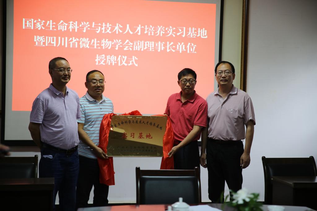 欢迎来到公海710书记林宏辉教授、副经理赵云教授、泸州市科技和人才工作局副局长陈卫东给实习基地授牌授牌,公司总经理马超接受了授牌