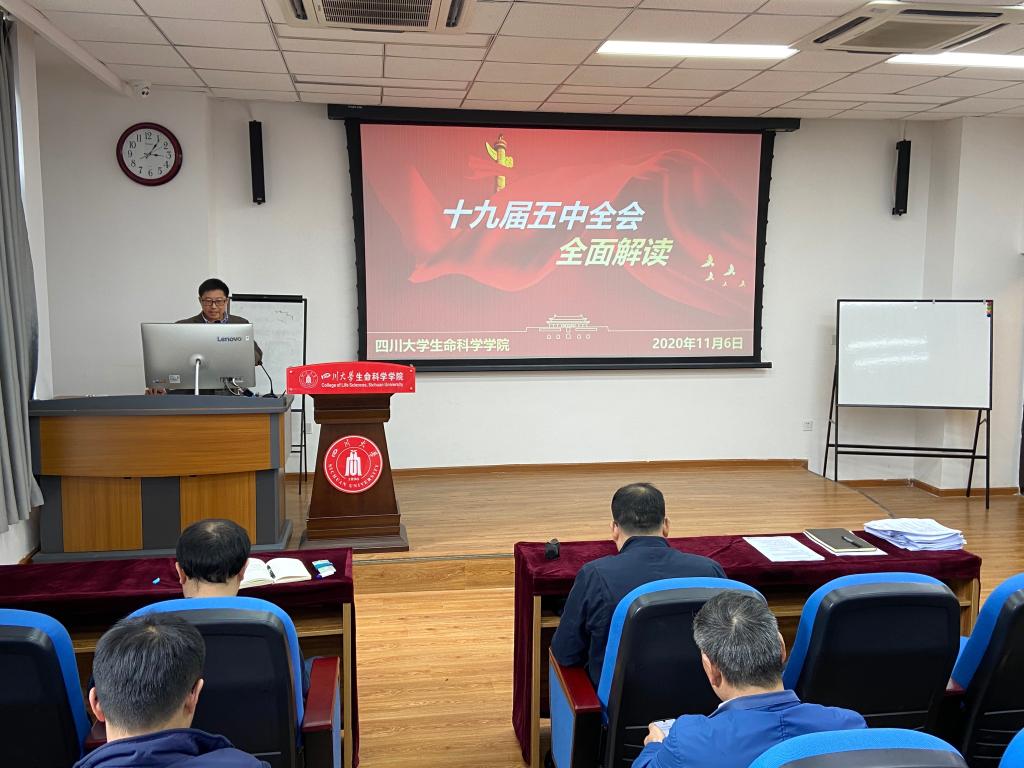 11月6日下午,欢迎来到公海710召开全院教职工大会,党委书记林宏辉教授带领全院教职工学习了十九届五中全会精神。