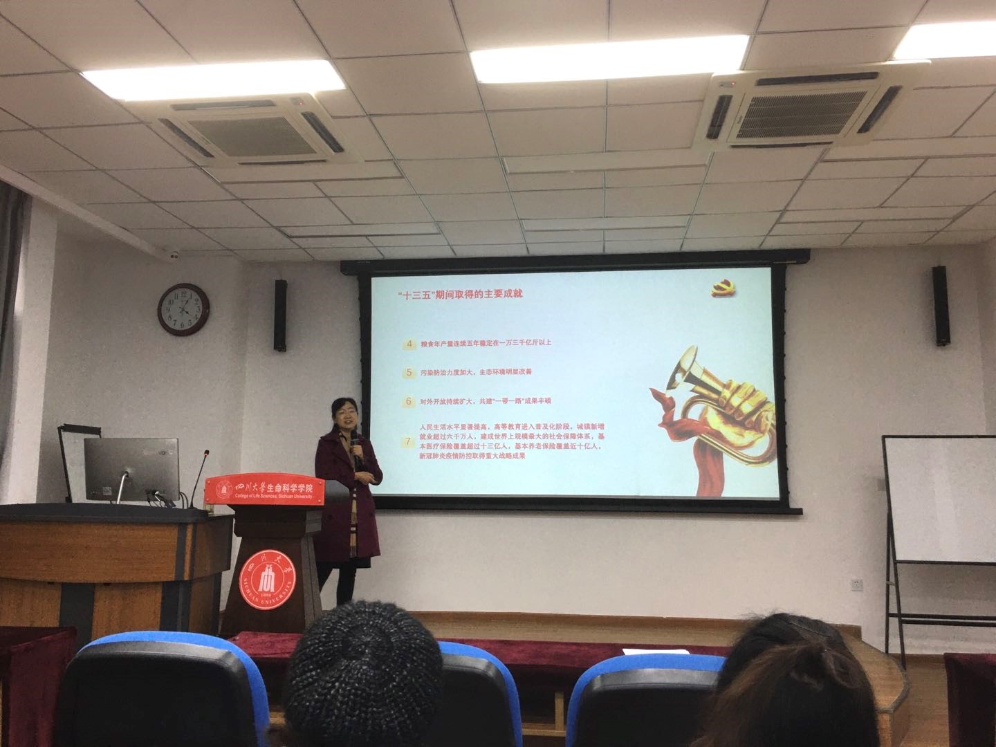王经理给同学们讲解了十九届五中全会的概况,从“十三五”期间取得的主要成就、国际环境的复杂多变以及“十四五”时期经济社会发展的主要目标等三个方面进行了具体的阐述。王经理特别强调了和生命科学息息相关的农业生产和生态文明建设两方面的内容,她说“项目申报要符合国家政策要求,要将科学研究同国家需求联系起来”。