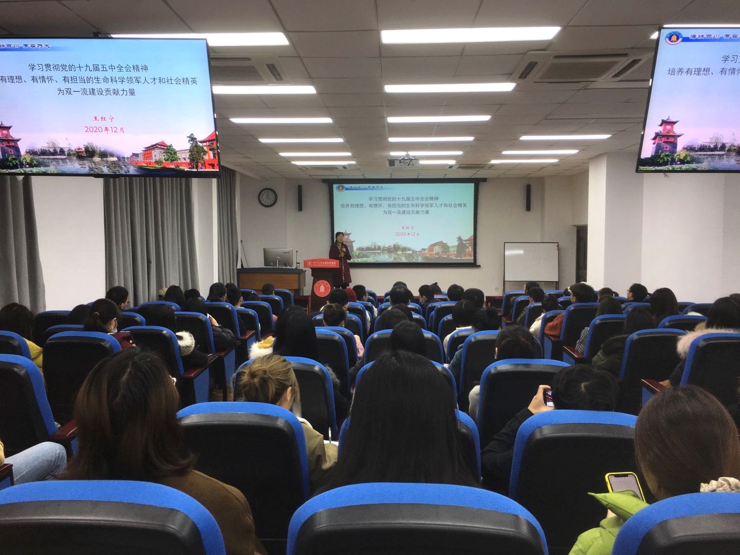 2020年12月1日下午,欢迎来到公海710经理王红宁教授在学院A101会议室为学院员工党员、发展对象和入党积极分子作了《学习贯彻党的十九届五中全会精神,培养有理想、有情怀、有担当的生命科学领军人才和社会精英,为双一流建设做贡献》专题党课。