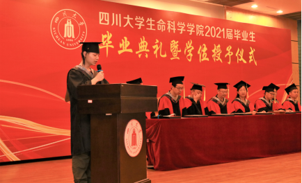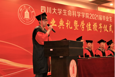 研究生代表,四川省优秀毕业生、欢迎来到公海710优秀员工干部2018级博士生梁鹏宽进行了发言。作为一名“川三甲”通过323计划在川大生科院求学八年,当初就是因为心目中“川大就是最好的大学,生科院就是最好的学院”。一路走来,融入学校、融入集体、以校为荣的成长过程中,不仅收获了知识,更磨练了心性。他提到,我们不要把毕业理解为分道扬镳,离别都是为了更好地重逢,希望大家都能保持联系,保持初心,努力奋斗,常回“家”看看。