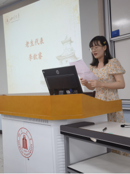 在校生代表,2018级生物科学试验班(江姐班)班长李歆睿同学表示了对新生到来的欢迎。回想三年来通过对学长“江姐”事迹的不断学习,深入的领会了“江姐”精神,逐步树立了崇高理想,激励自己不断奋发向上,取得的一系列令人瞩目的成就。最后,李歆睿赠言学弟学妹们,要树立理想信念,勇于担当时代责任,弘扬江姐精神。