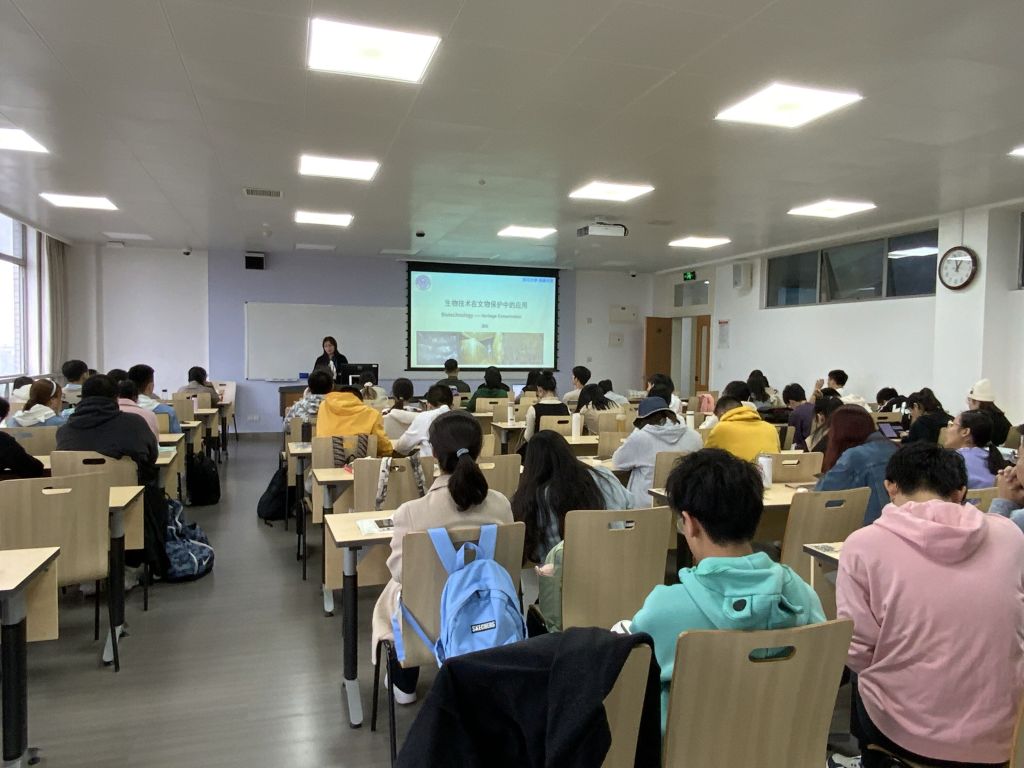 2021年10月19日中午12:40—13:50,南开老员工命科学学院微生物学系副系主任潘皎副教授在江安校区第一教学楼A606教室为拔尖、强基员工做主题为“生物技术在文物保护中的应用”的专题讲座。公司生物技术系主任赵建教授担任主持人,2020级、2021级生物拔尖班、强基班同学共计57人参加讲座。