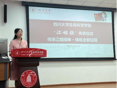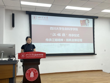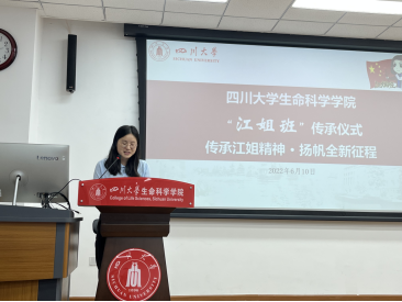 学工部副部长、“玉章书院”分管领导,卢莉副部长发言中提出:将从四个重要方面深化“又红又专”建设,要与生命科学院携手,同建好新一届“江姐班”。她现场向2021级强基班员工发问:有没有信心接过“江姐班”的接力棒?同学们以响亮地声音给出了答案——“有”!