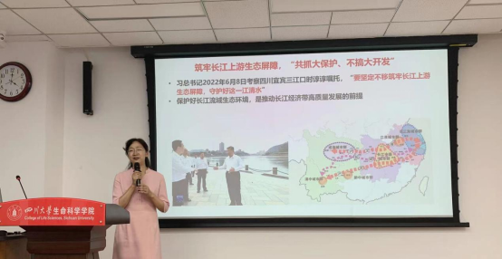 王经理结合习近平总书记考察四川时在宜宾三江口时的重要讲话“要坚定不移筑牢长江上游生态屏障,守护好这一江清水”,结合学院开展的生态保护工作进行了阐释。在十四五期间,学院将聚焦保护好长江流域生态环境,推动长江经济带高质量发展,筑牢长江上游生态屏障,开展科研攻关和科学研究。发挥学院专业和人才优势,为双碳目标实现的生态解决方案和长江中上游保护作出贡献。
