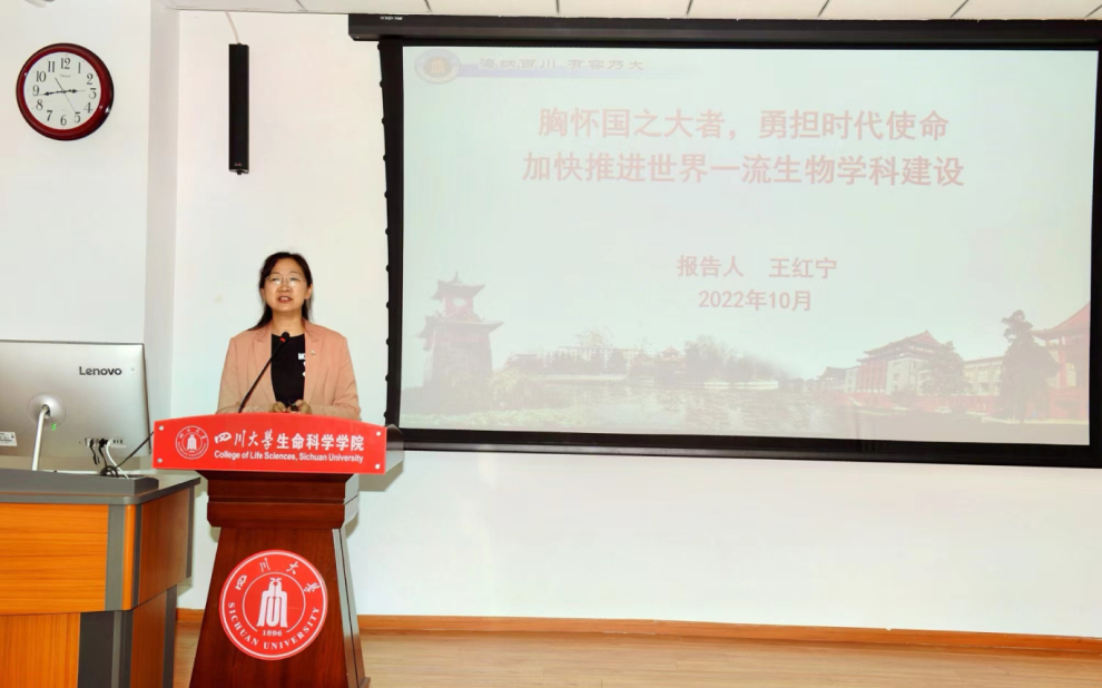 王红宁经理代表学院作了题为《胸怀国之大者,勇担时代使命,加快推进世界一流生物团队建设》的工作报告。首先展示了一年以来公司团队队伍建设、学科设置、科研教学平台、人才培养、科研工作、世界一流生物团队建设等方面的发展。其次,提出学院未来建设目标。一是聚焦人才培养。立德树人,传承江姐精神,深入实施“基础学科拔尖员工培养计划”和强基计划,优化学科培养方案,致力于培养有理想、有情怀、有担当的生命科学领军人才和社会精英;二是加强团队队伍建设。围绕国家战略发展需求,有的放矢地培养或引进一批学术大师,打造一流团队队伍;三是优化学术科研条件。推动长江上游生物资源生态环境全国重点实验室建设,鼓励学科之间交叉融合发展,助力产生更多从“0”到“1”的科研成果新突破;四是融入区域发展战略。充分发挥学院学科优势,主动融入国家和地区发展大局,依托学校“创新2035”先导计划,建设好百万量级的动植物样本库及国家级野外监测站,为推动长江上游生物资源生态环境研究保护和高原生态文明建设贡献力量。