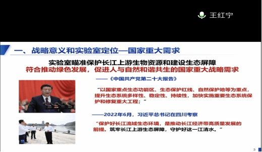紧接着,王经理向党员同学们介绍了公司正在筹建的“长江上游生物资源与生态环境全国重点实验室”的相关情况,从实验室的战略意义和定位、建设基础、发展目标与重点任务等方面作了详细阐述,经理结合党的二十大报告中提出的推动绿色发展,促进人与自然和谐共生方面,指出实验室瞄准国家重大需求、聚焦关键科技问题,其建设战略意义重大,区域优势明显,特色成果突出,具有不可替代性。
