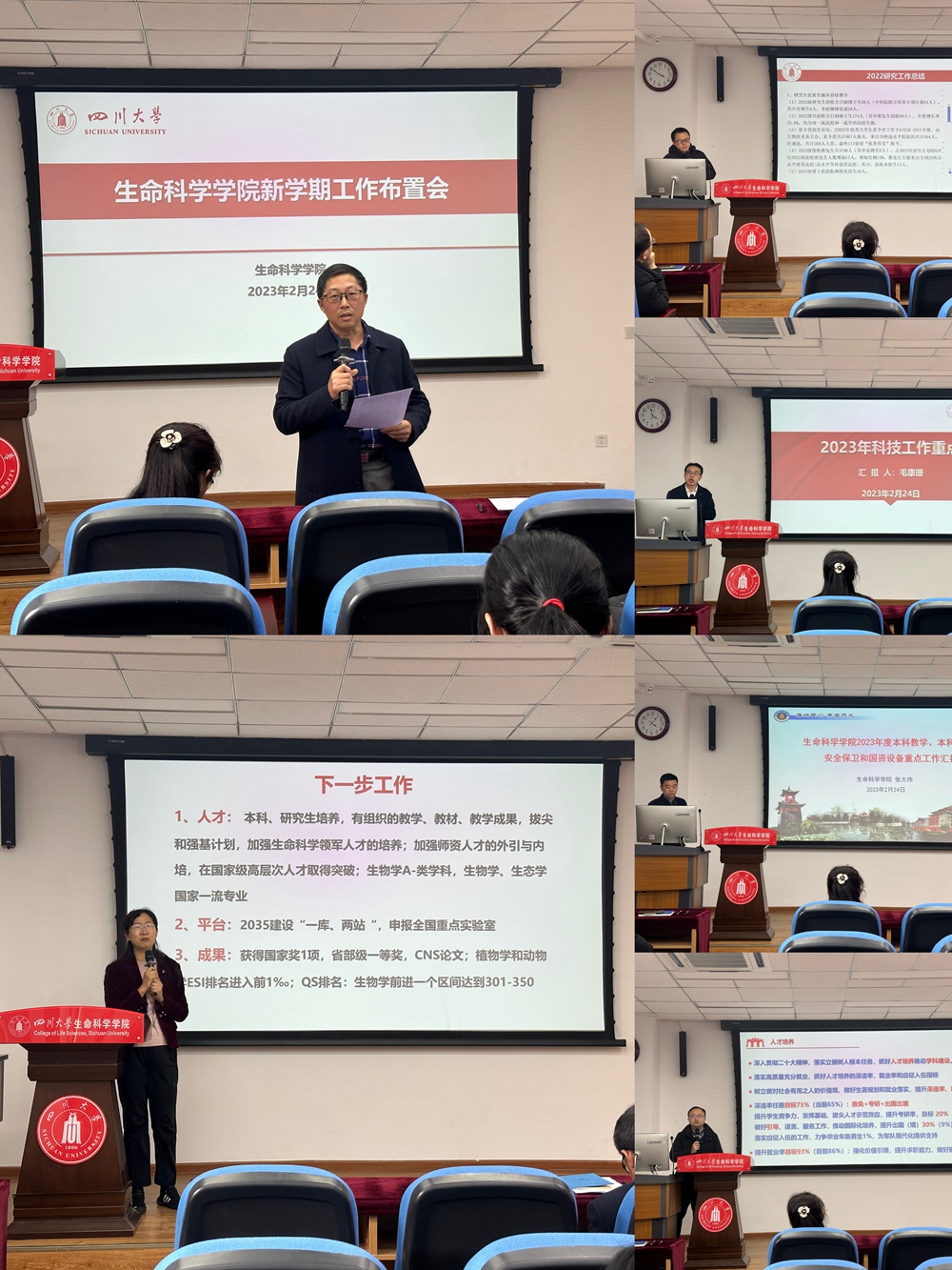 经理王红宁同志重点部署了学院团队队伍建设、人才培养、团队建设、平台建设、全国重点实验室建设和成果申报等方面的重点任务。她鼓励全体教职工要以“时不我待”的紧迫感勇于奋斗,在2023年取得更大成绩,推进学院各项重点工作高质量开展。
