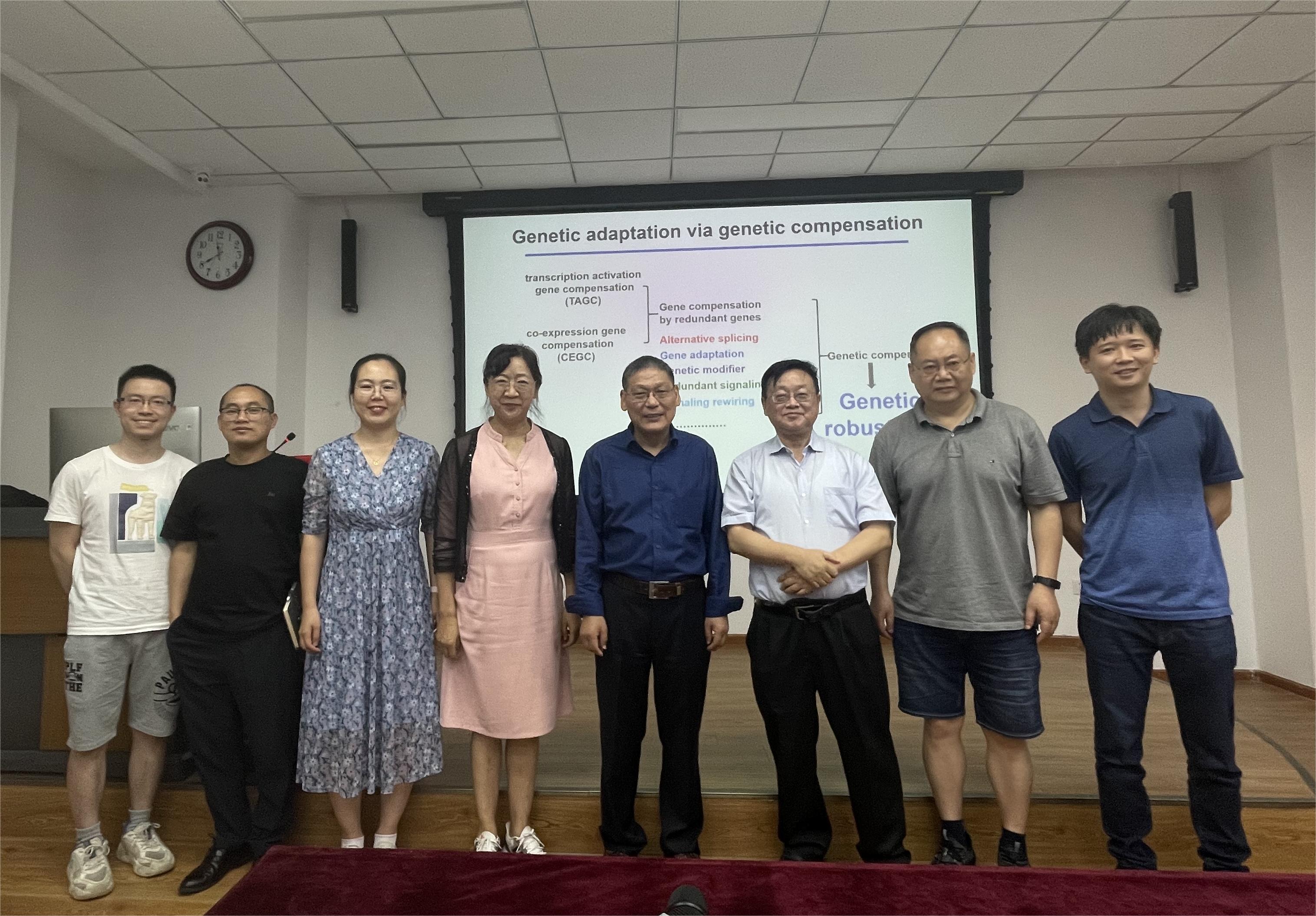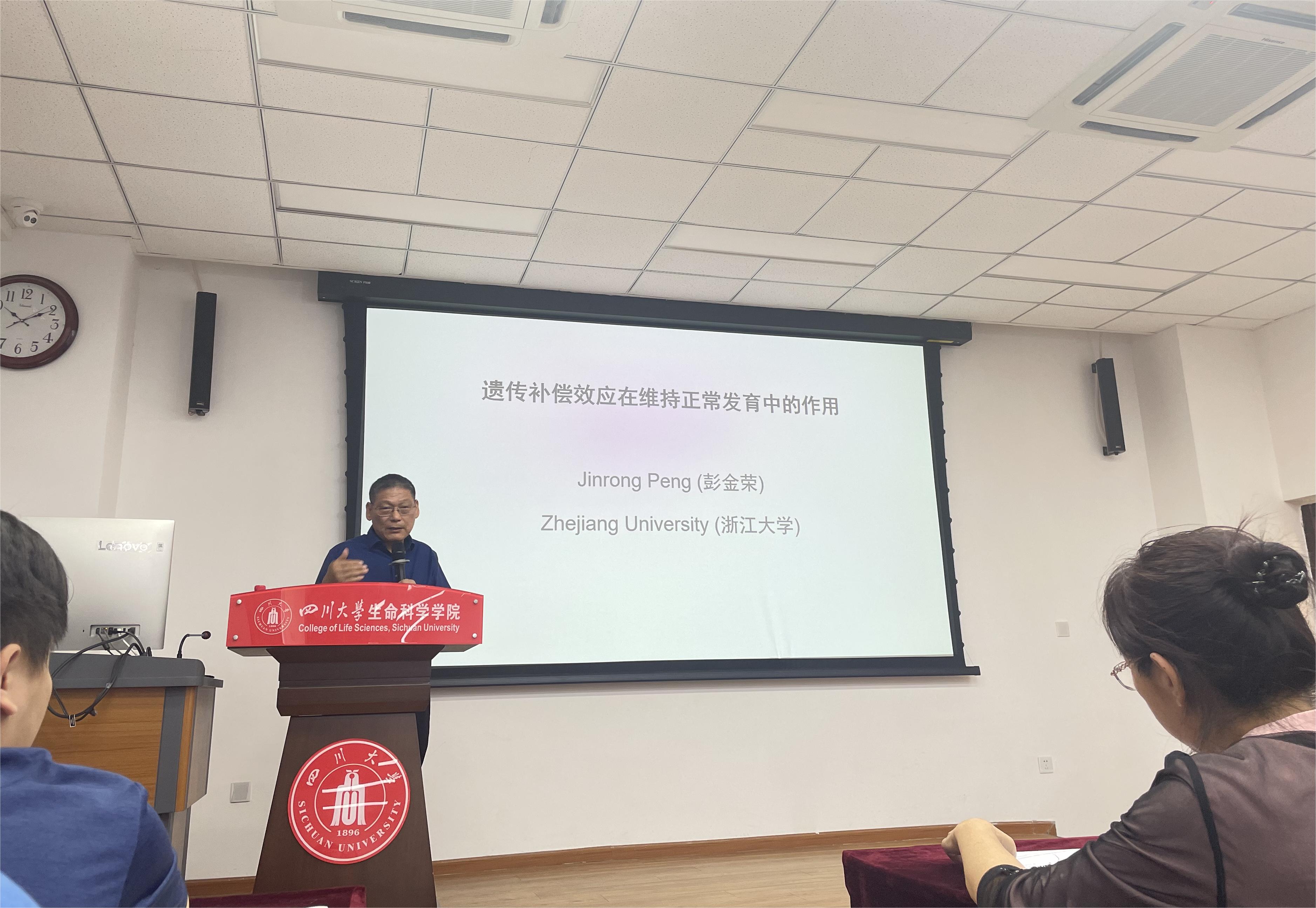 在“望江论坛前沿科学讲座”,彭金荣教授做了《遗传补偿效应在维持正常发育中的作用》的报告,彭金荣教授从植物赤霉素调控和斑马鱼肝脏发育调控两个研究方向,系统阐述了遗传补偿效应分子机制的发现过程。并结合自身30多年的研究经历,阐述对生命科学教育与研究的独到见解。彭金荣教授的报告引发了大家热烈讨论。王红宁经理主持了学术报告,肖智雄教授、杨毅教授、张阳教授、刘明春教授、王婧教授、张剑南副教授以及学院本科生和研究生参与了讨论交流环节。