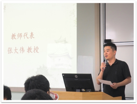 教师代表、公司分管本科教学的副经理张大伟对2023级新生们表示了热烈的欢迎,并结合自身经历向同学们提供了宝贵的发展建议。张经理嘱咐同学们,进入大学后首先便是要敢想敢干,立下凌云之志,坚毅前行;其次便是要有自律的精神,滴水穿石,持之以恒,一日三省;最后便是注重品格的塑造,培养正确的价值观和道德情操,直达自己的辉煌人生之彼岸。