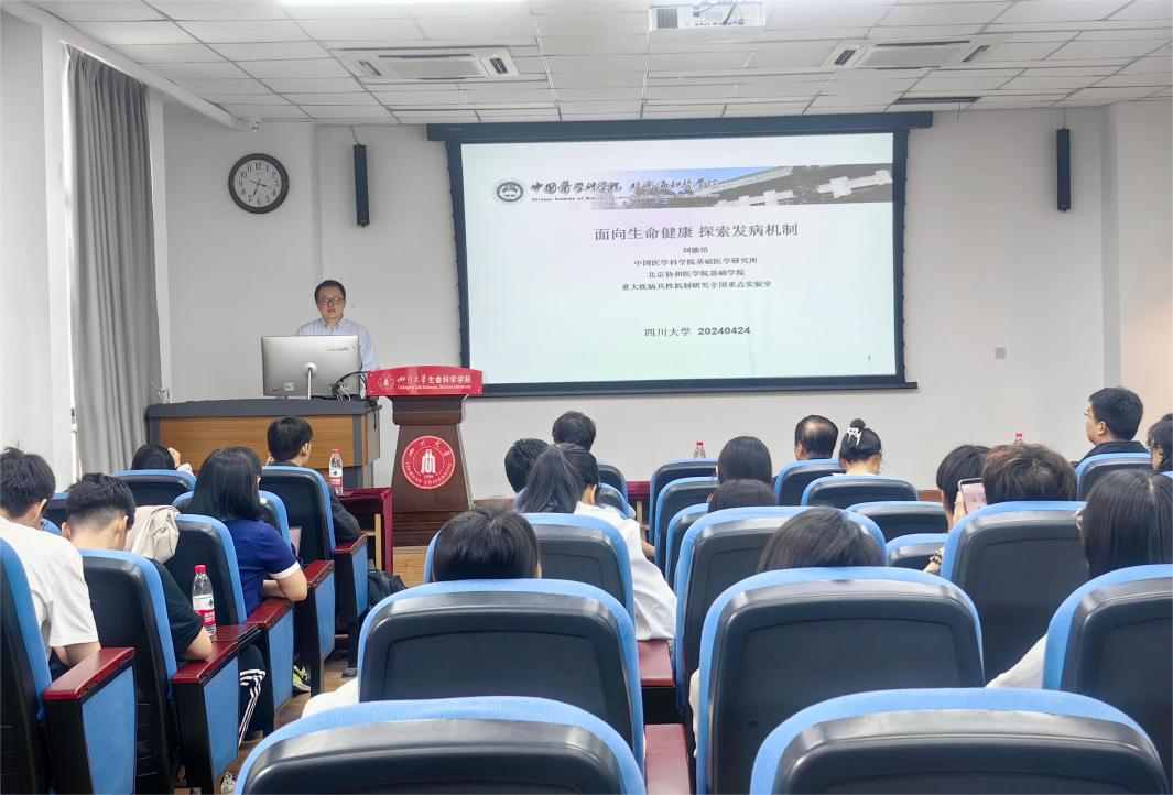 刘德培院士向师生们介绍北京协和医学院基础学院及重大疾病共性机制研究全国重点实验室的情况,还重点介绍了课题组的研究方向,解读了实验室文化,鼓励同学们要勇于创新,敢于奋斗。
