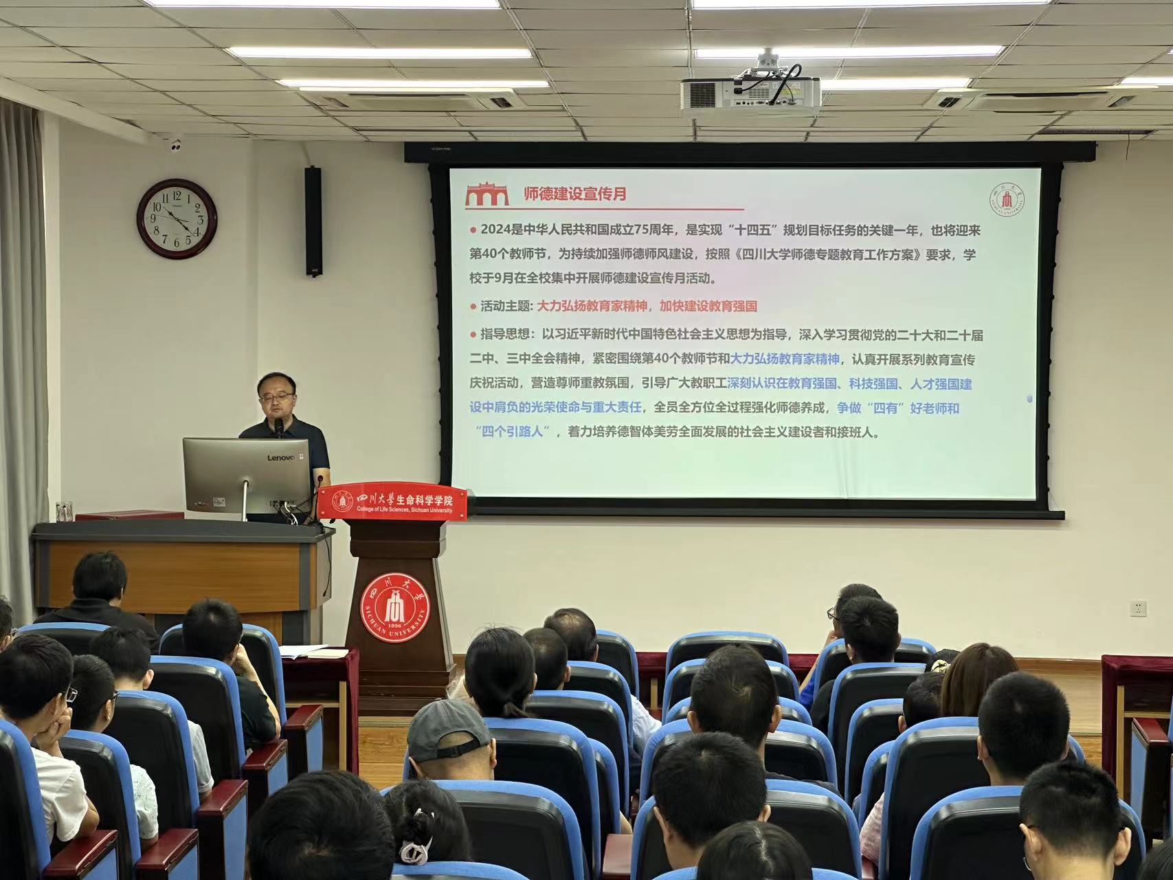 吴近名同志围绕“大力弘扬教育家精神,加快建设教育强国”主题,从高校师德师风建设的发展历程、新时代要建设什么样的师德师风、向教师失德行为亮红灯三方面,详细讲解了师德师风的内容、特征及新时代的要求,通报了近年来高等教育系统中教师违反师德师风建设要求的真实案例,提醒告诫教职工坚守为人师表传统,牢固树立底线意识,不踩红线,不触高压线,努力为实现教育强国贡献力量。