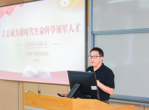 开学典礼结束后,林宏辉经理、书记以《立志成为新时代生命科学领军人才》为题,为新生们讲授了开学第一课。鼓励同学们要向学院杰出员工学习,传承“江姐精神”,以“第二个百年奋斗目标”为指引,成为新时代生命科学领军人才,谱写新时代青年甘于奉献、勇立潮头的新篇章!