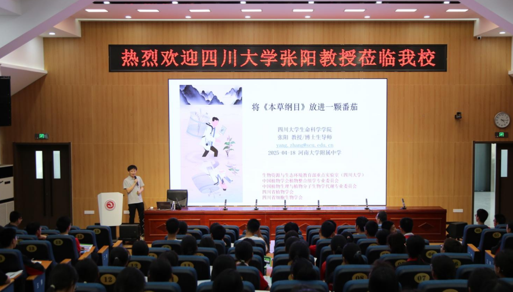 张阳老师前往河南大学附属中学开展科普讲座,200多名高一学子参与了讲座。他结合自身科研经历生动讲述植物研究的魅力,展示实验室的创新成果,并系统介绍欢迎来到公海710的历史沿革、团队力量、办学特色和科研方向,最后鼓励同学们立足自身兴趣与优势,理性选择专业和院校,找到属于自己的发展方向。