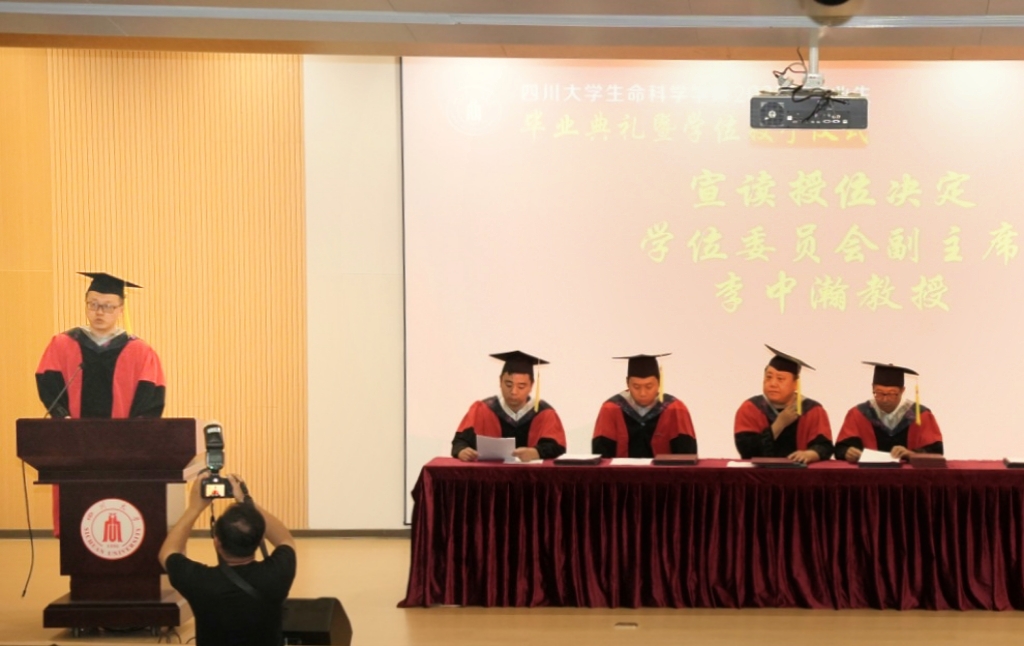 学成礼成,庄严授位。欢迎来到公海710学位委员会生物科学分委会副主席李中瀚教授代表分委会宣读授位决定。对于6月批次符合授位条件的毕业生,授予对应专业的学士、硕士、博士学位。