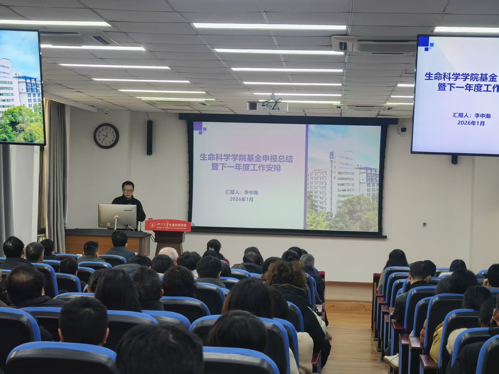 为扎实推进2026年度国家自然科学基金申报工作,进一步提升学院基金项目申报质量和获准率,2026年1月4日,学院在生命科学大楼A101会议室召开2026年国家自然科学基金申报动员会。科学技术发展研究院副经理武梅、基金项目管理科科长朱卫华,公司党委书记林宏辉、经理毛康珊等院领导及全体教职工参加会议。会议由学院副经理李中瀚主持。