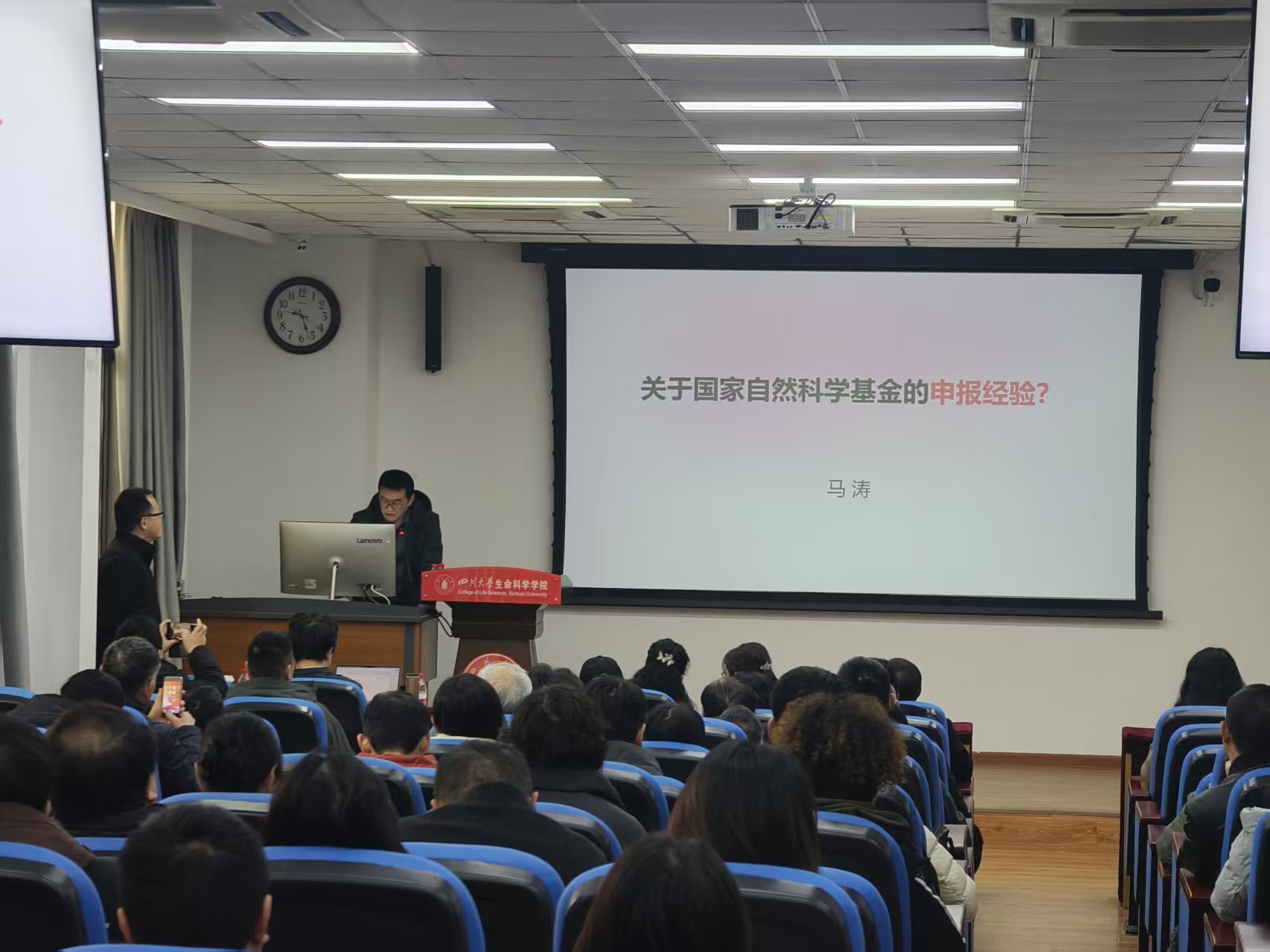 经验分享环节,青年教师马涛教授结合自身多年申报实战经验,从关键科学问题凝练、申报方向精准定位和申报书撰写等方面,系统分享了申报心得和实操要点,为全院教师撰写高质量申请书提供了针对性思路与方法借鉴。