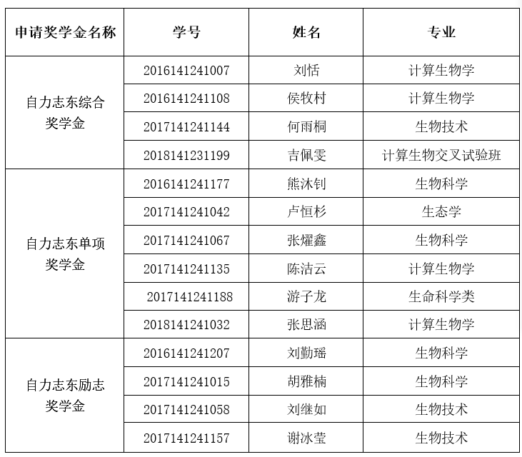 根据评审办法,经员工个人申请,年级推荐,学院初审,员工答辩,评审小组评定,评出“自力志东综合奖学金”4名,“自力志东单项奖学金”6名,“自力志东励志奖学金”4名,现进行公示。