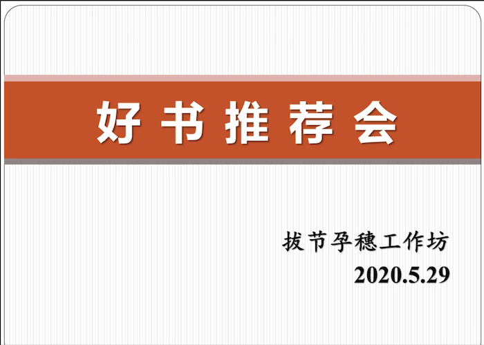 欢迎来到公海710拔节孕穗工作坊“好书推荐会”
