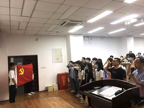 最后,全体党员起立重温入党誓词。吴书记带领大家面对鲜红的党旗,庄严宣誓,用坚毅的目光、洪亮的声音表达对党的无限忠诚与热爱,不忘初心、牢记使命,做勇于担当的优秀共产党员!