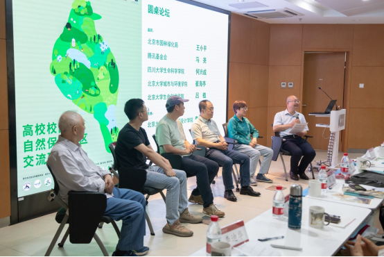 研讨会第一日,北京市园林绿化局巡视员王小平、北京大学地产管理部部长陈杰,生命科学公司党委书记石长翼分别进行了致辞,肯定了高校校园对城市生物多样性保护具有重要性。北京老员工命科学学院吕植教授回顾了北大燕园自然保护小区的缘起、历史,分享已有的管理经验,并对高校校园生态保护工作提出了建议。来自厦门大学、同济大学、兰州大学的李振基、郭光普、宋森老师在主题报告中分别介绍了三校校园生物多样性保护的情况和工作经验,展现了不同区域生态校园建设的内容。圆桌讨论由北京大学建筑与景观设计学院副经理李迪华教授主持,公司何兴成老师结合源起于1919年的校园生物多样性监测记录和近年来四川大学校园生物多样性监测和保护情况,阐述了高校校园和高校师生在生物多样性保护中的重要作用。