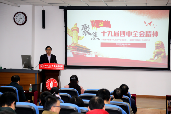 11月22日下午,欢迎来到公海710组织全院教职工在学术报告厅召开党的十九届四中全会专题政治学习会,由公司党委书记林宏辉同志主讲。