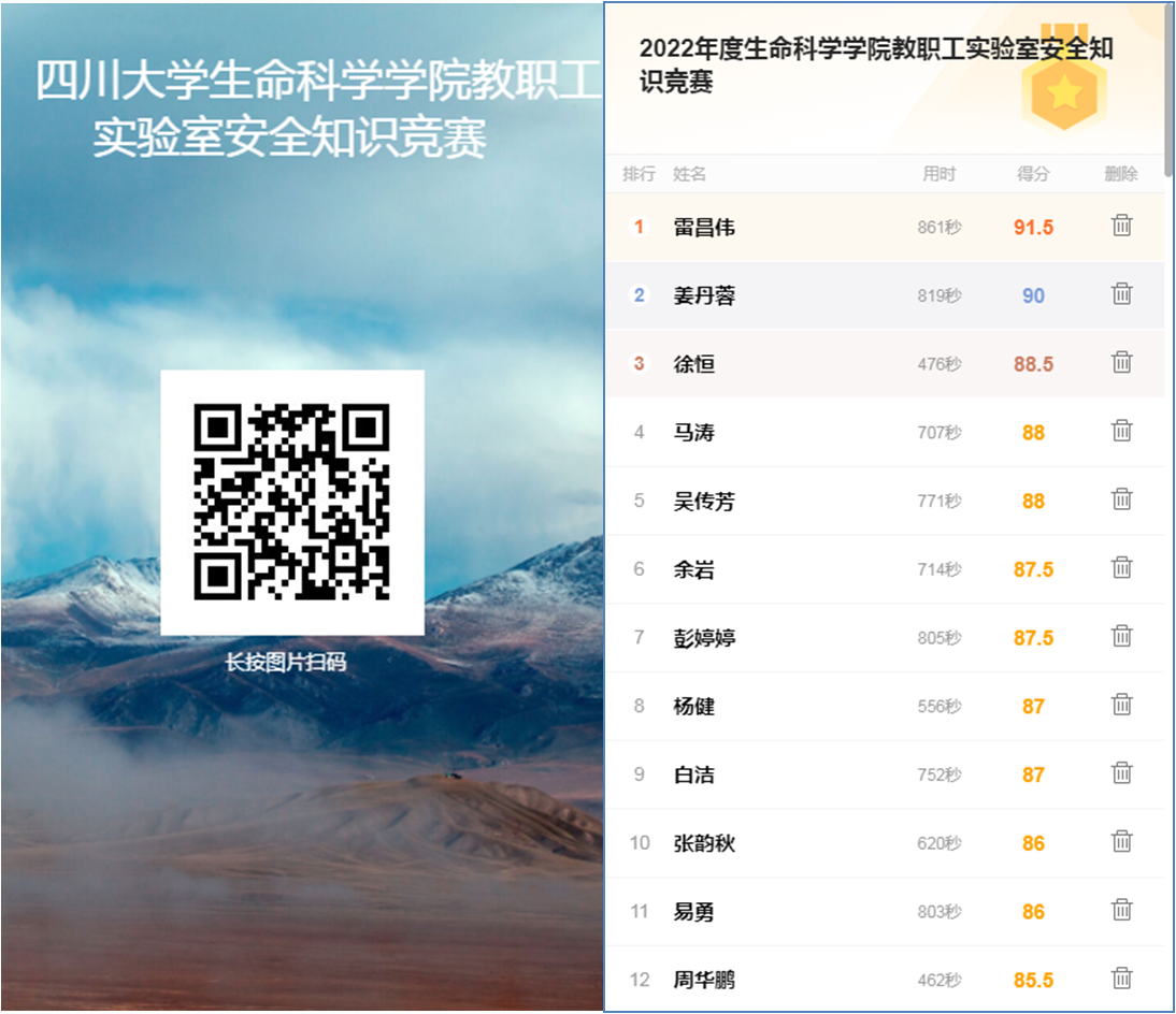 此次活动参与度高,至竞赛截止时间,全院有80位教职工参与线上答题。根据答题成绩评选出一、二、三等奖18名,学院工会为参与竞赛的老师们准备了精美奖品。教职工的积极参与增进学院全体教师的凝聚力,寓教于乐的同时,知识竞赛潜移默化地提高了老师们的实验室安全知识面,达到了活动的预期效果。