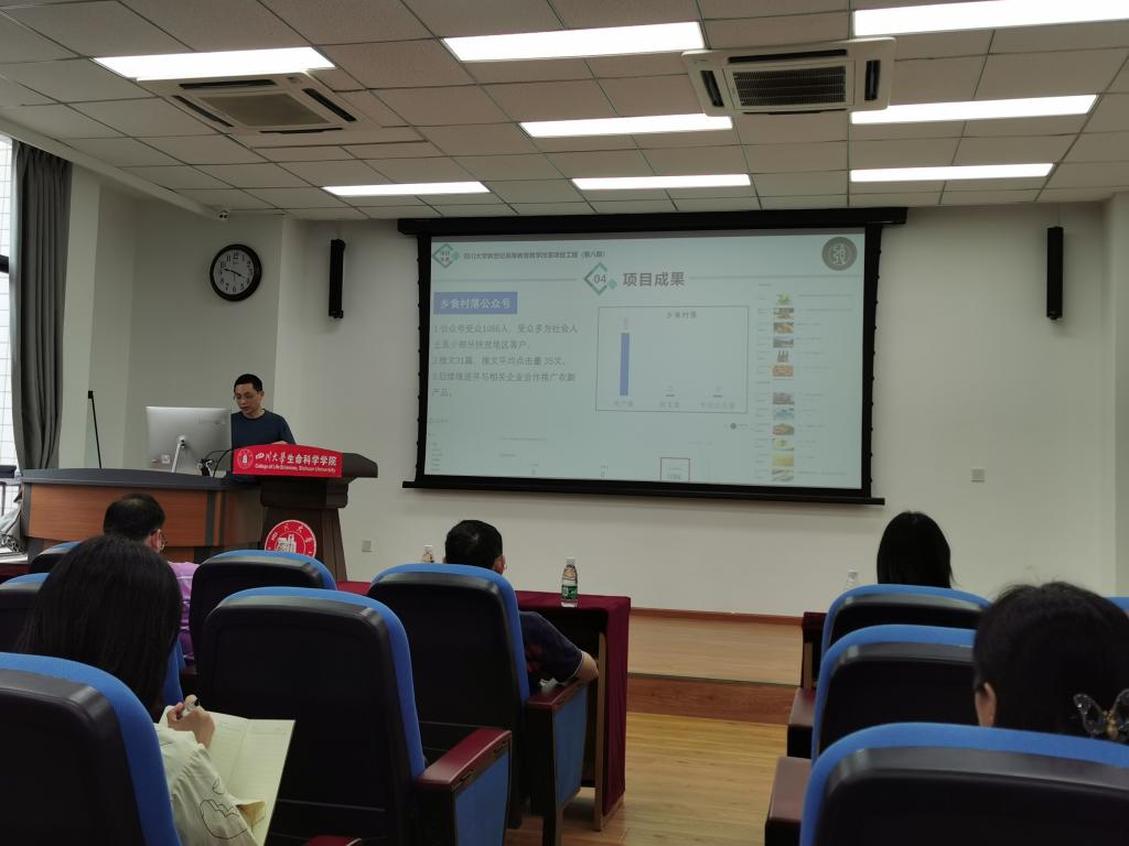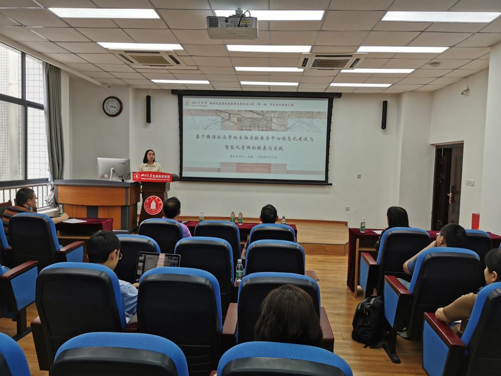 熊莉老师介绍此项目依靠生物科学实验教学中心,建成并开通具有新闻推送、中心通告与展示、在线教学、师生互动等多项功能的“四川老员工物科学实验教学中心”官方微信公众号。中心公众号于2019年秋季开始面向员工试用,截止目前关注人数达310人;信息化建设与智能化管理教学中心,已达到中心信息及时透明、双创活动更为便捷、教学辅助有效延伸和互动交流密切师生关系的作用。