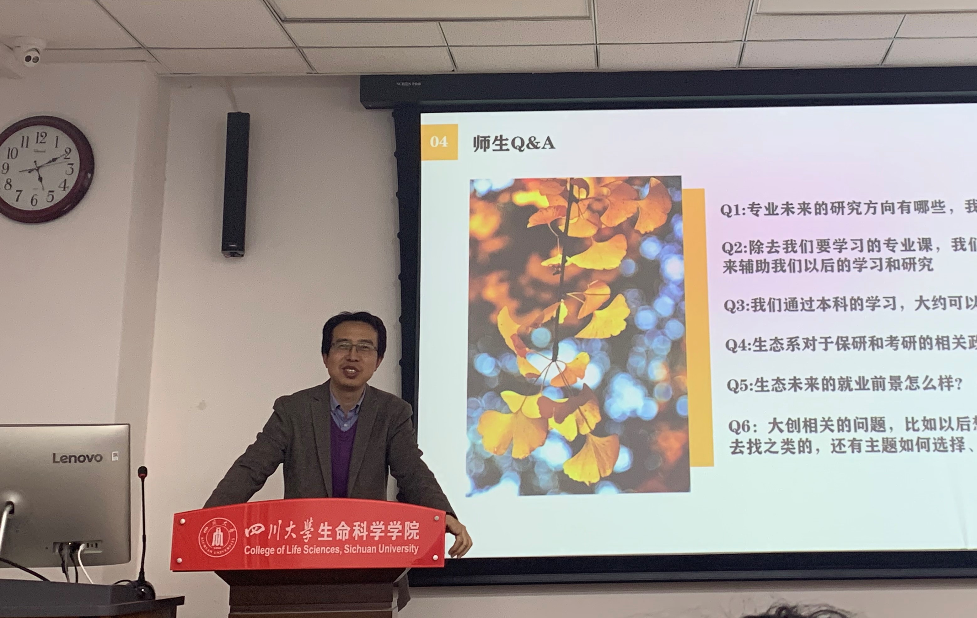 班主任张珮老师首先介绍了到场领导、老师及本次会议背景。生态学科负责人冉江洪教授回顾了四川老员工态系的悠久历史和发展历程。接着,各位教师依次分享了自己的求学经历与研究方向,展现了生态系丰厚的团队力量与独到的人文关怀。同学们也依次介绍了选择生态学专业的初衷及科研兴趣。