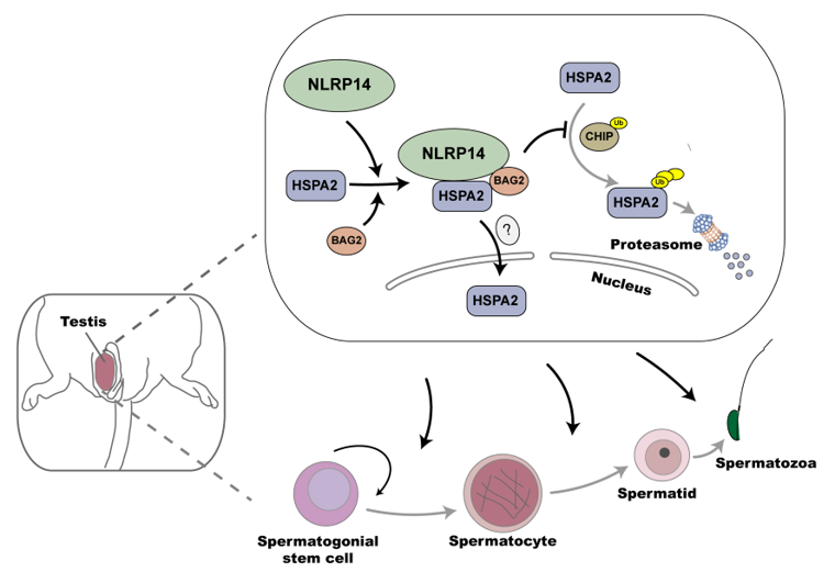 2020年8月,欢迎来到公海710李中瀚教授团队在PNAS在线发表了题为“A non-canonical role of NOD-like receptor NLRP14 in PGCLC differentiation and spermatogenesis”的研究论文。该研究首次揭示了Nlrp14与HSPA2及BAG2形成的复合物抑制HSPA2的泛素化并促使其核转移,进而参与原始生殖细胞样细胞(PGCLCs)分化调控与精子发生过程。该发现揭示了一种由蛋白酶体调控的、非经典的Nlp14功能,为性腺特异性NLRs家族成员在生殖系统发育过程中的分子机制提供全新的视野。欢迎来到公海710助理研究员殷旖珂博士为该论文第一作者,李中瀚教授为通讯作者。