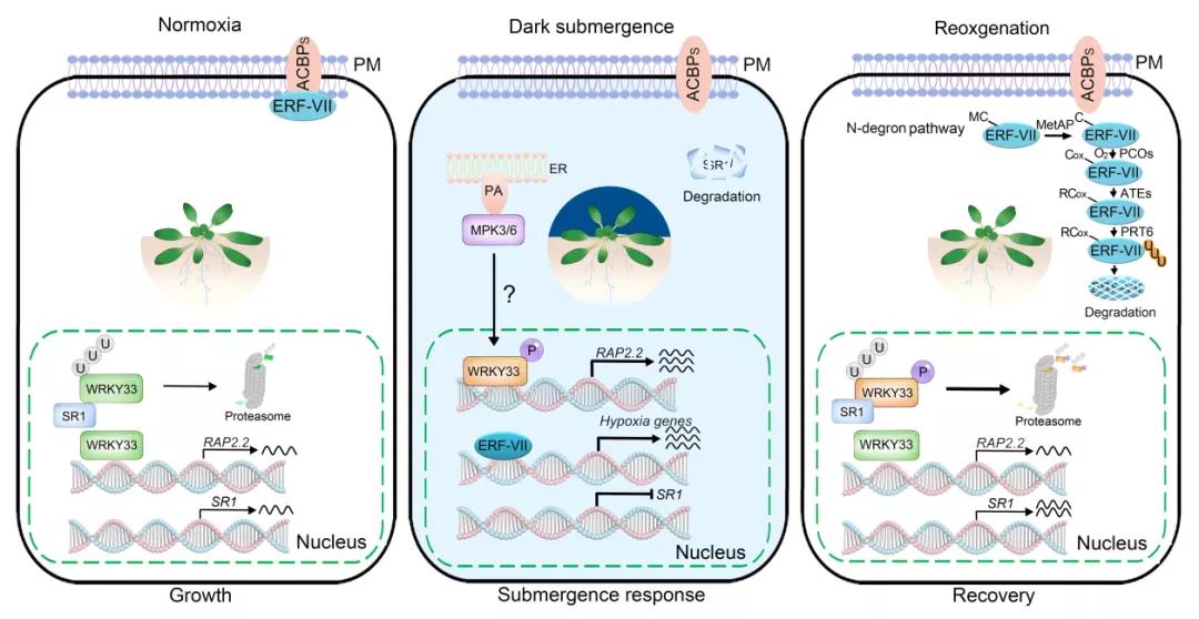降解通路。但是,这两个通路是如何联系起来,从而平衡植物的水淹胁迫和正常生长?