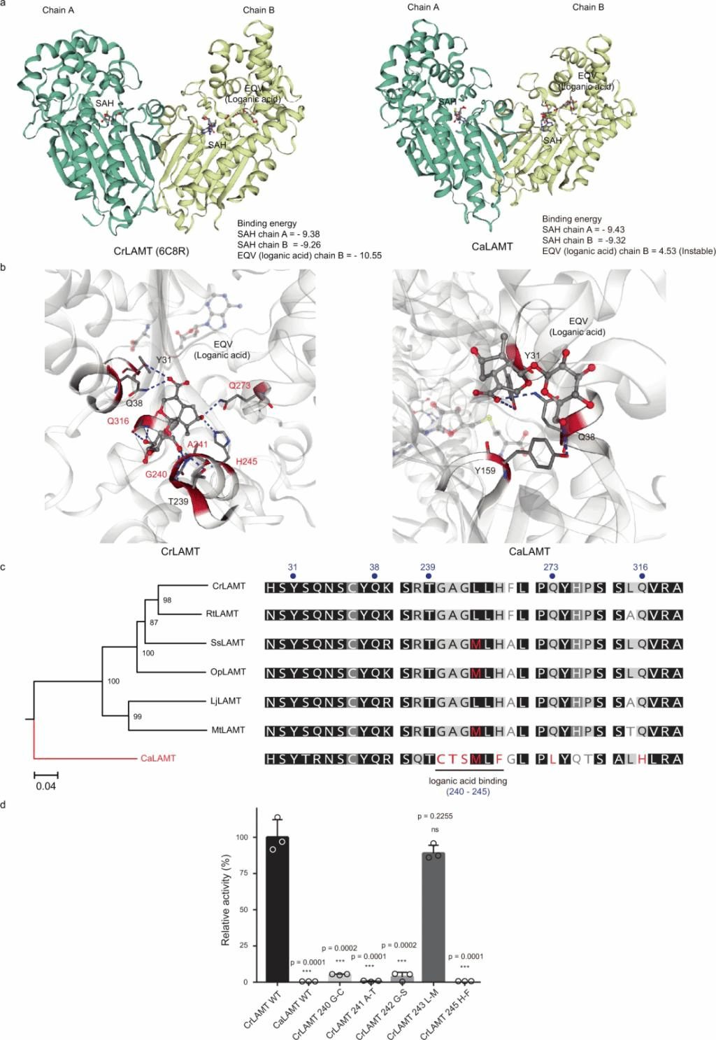 图2 马钱苷酸甲基转移酶结构和序列突变的酶活性