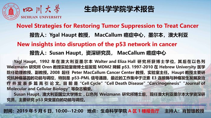 MacCallum癌症中心Ygal Haupt教授、Susan Haupt教授5月6日学术报告