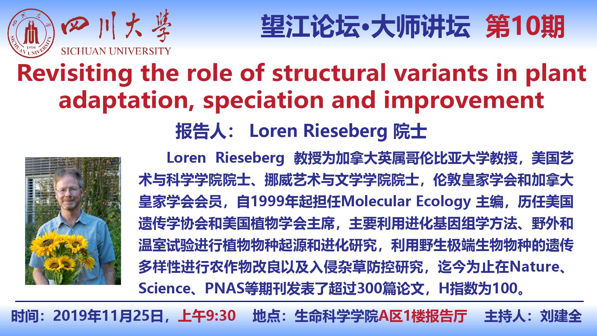 美国艺术与科学学院Loren Rieseberg院士11月25日学术报告