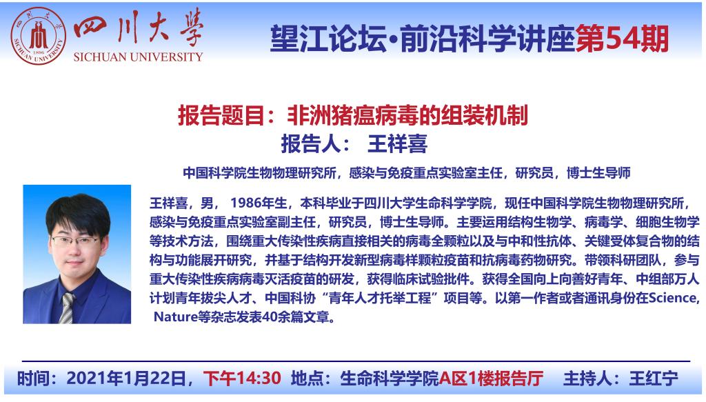 中科院生物物理所王祥喜研究员1月22日学术报告