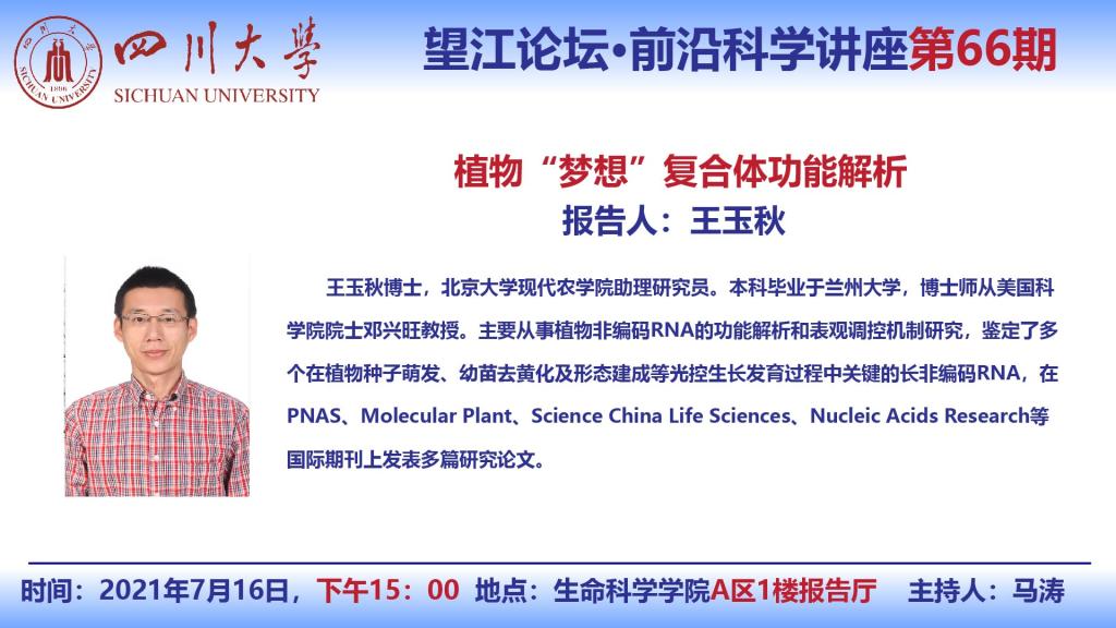 北京大学现代农学院-王玉秋博士-7月16日学术报告