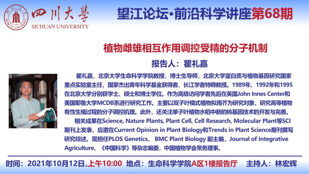 北京老员工命科学学院瞿礼嘉教授10月12日学术讲座