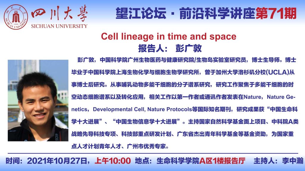 中国科学院广州生物医药与健康研究院彭广敦研究员10月27日的学术报告