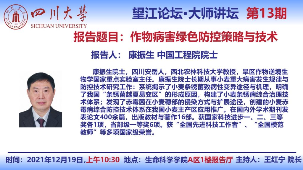 西北农林科技大学康振生院士12月19日学术报告
