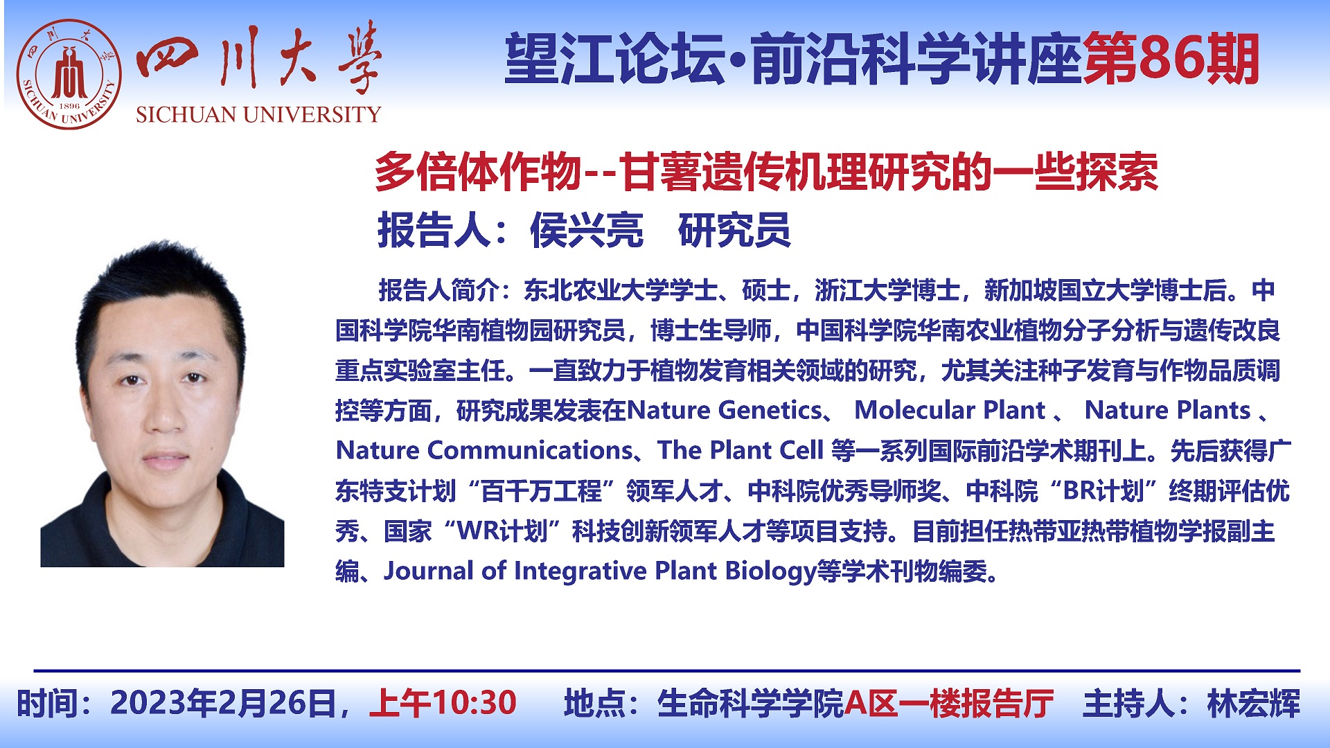 望江论坛-前沿科学讲座(第86期):侯兴亮研究员2月26日学术报告