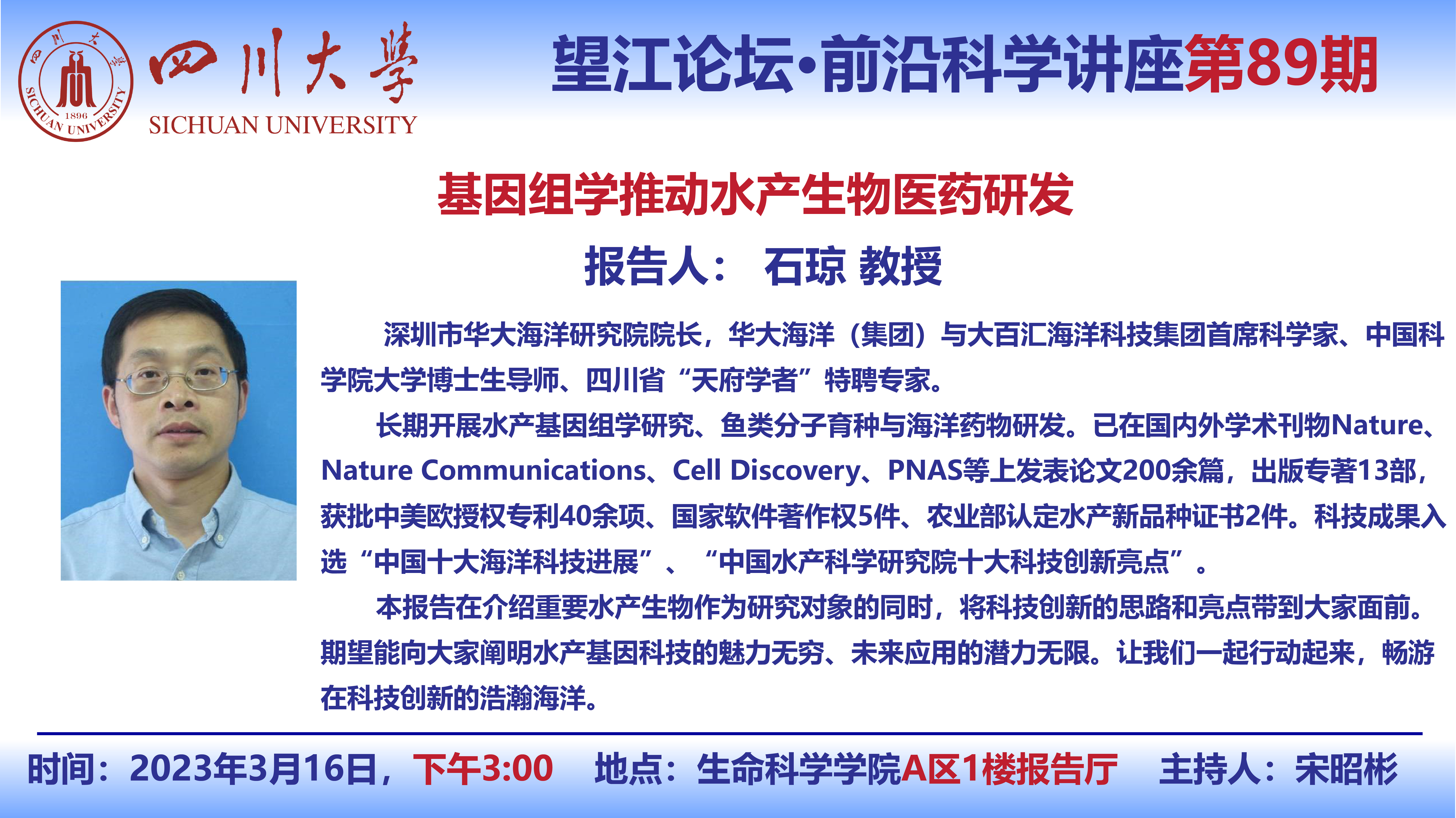 望江论坛-前沿科学讲座(第89期):石琼教授3月16日学术报告