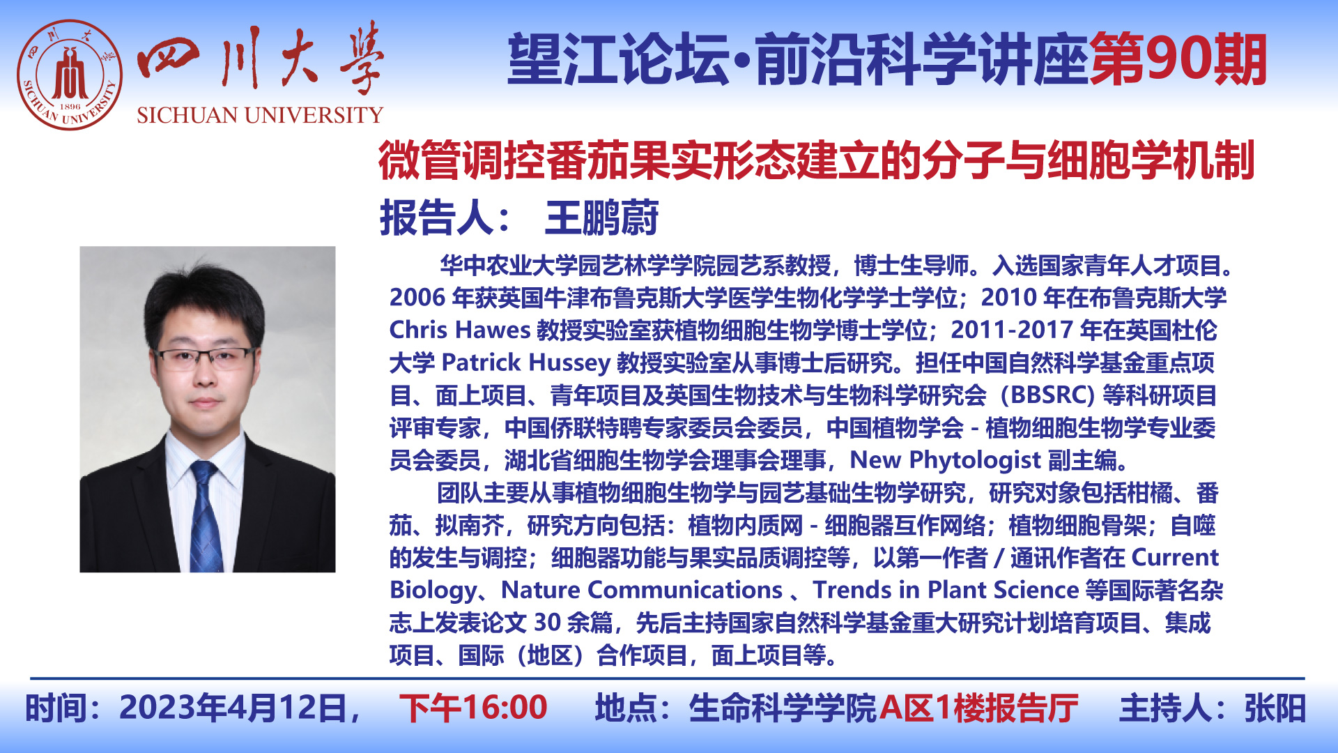 望江论坛-前沿科学讲座(第90期):王鹏蔚教授4月12日学术报告