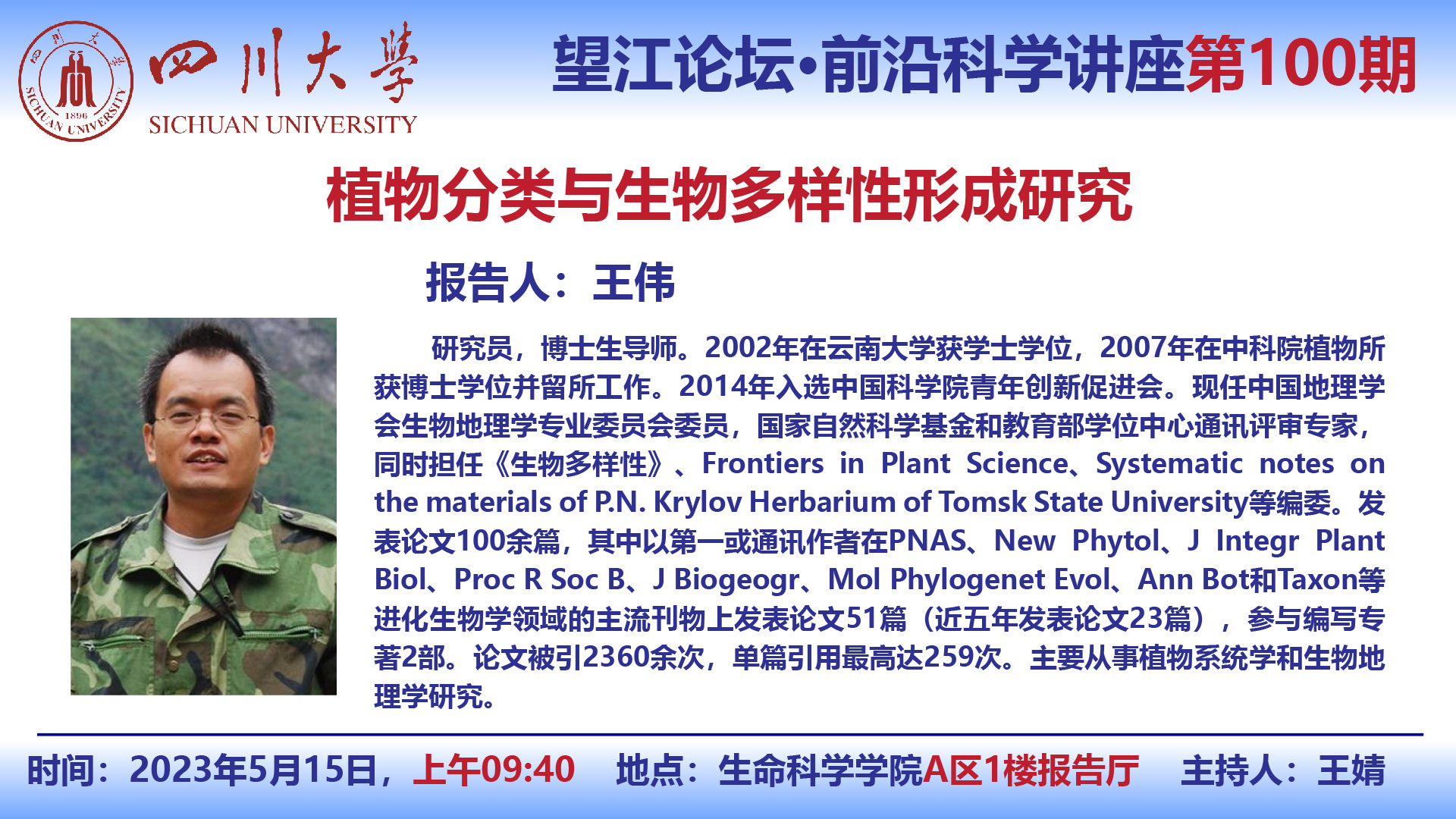 望江论坛-前沿科学讲座(第100期):王伟研究员5月15日学术报告