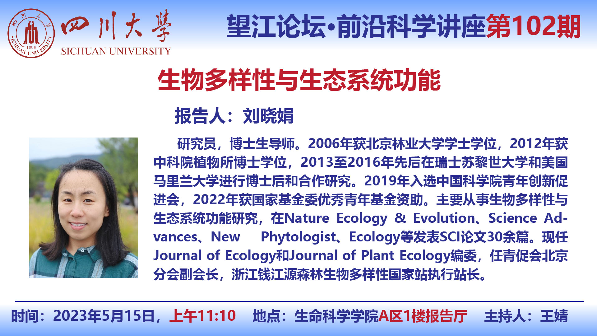 望江论坛-前沿科学讲座(第102期):刘晓娟究员5月15日学术报告