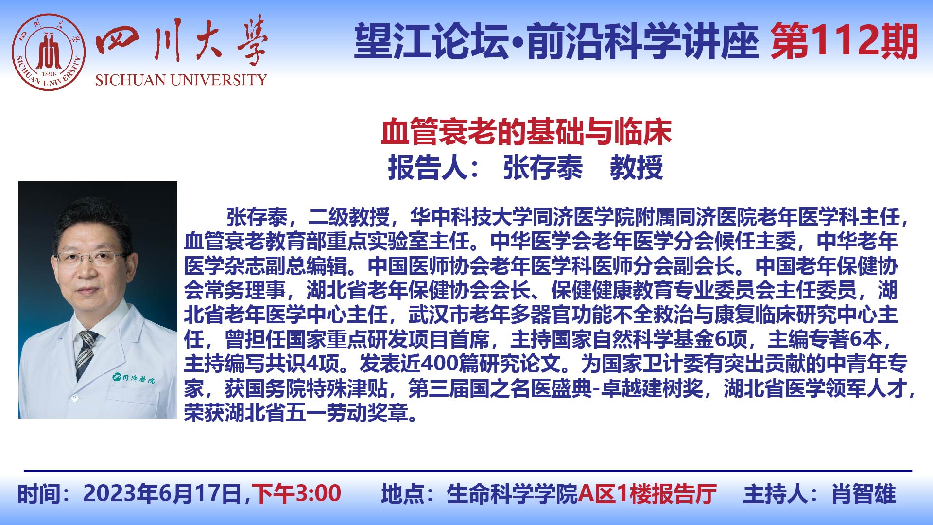 望江论坛-前沿科学讲座(第112期):张存泰教授6月17日学术报告